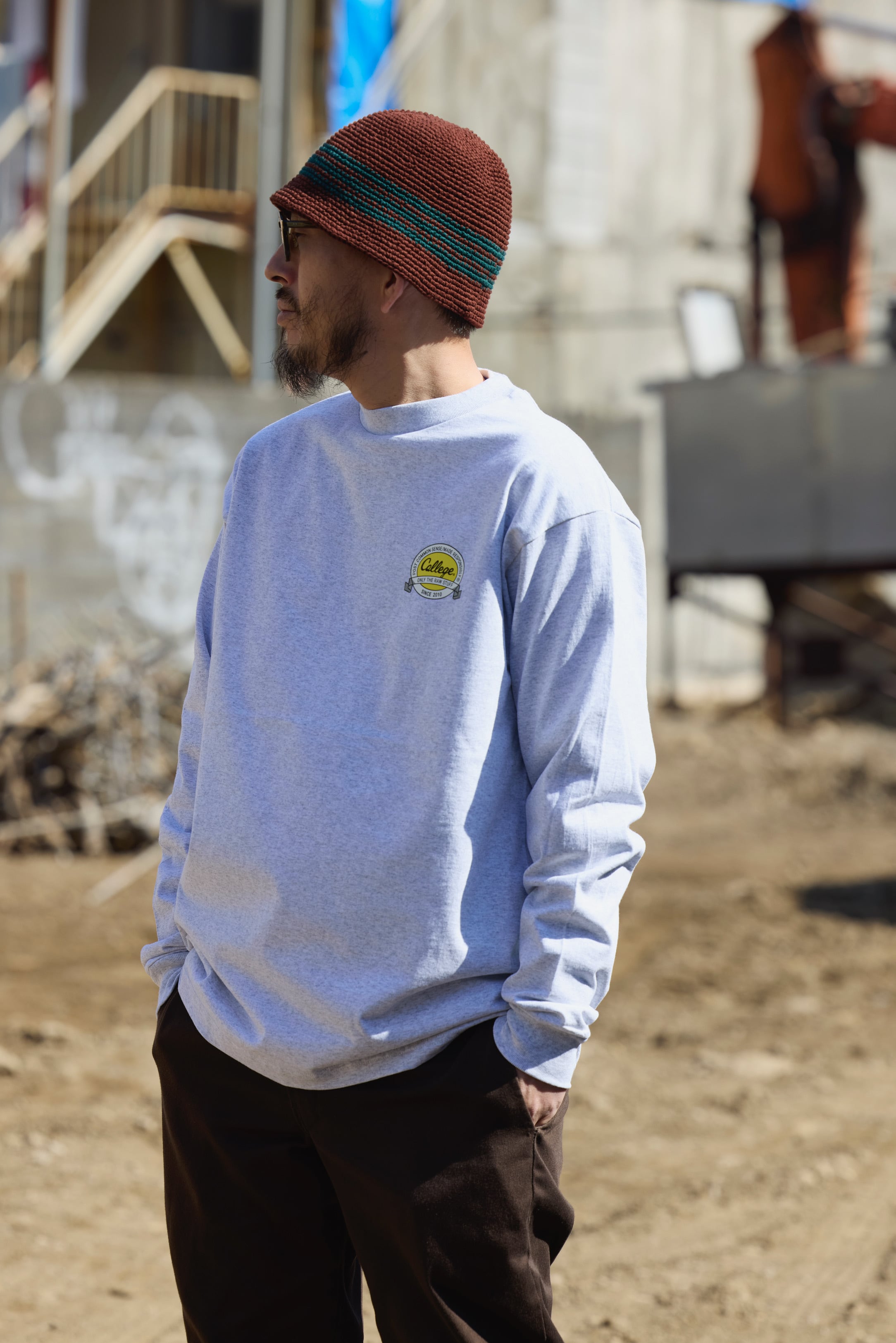 FLEUR STORE × college COTTON KNIT STRIPE HAT